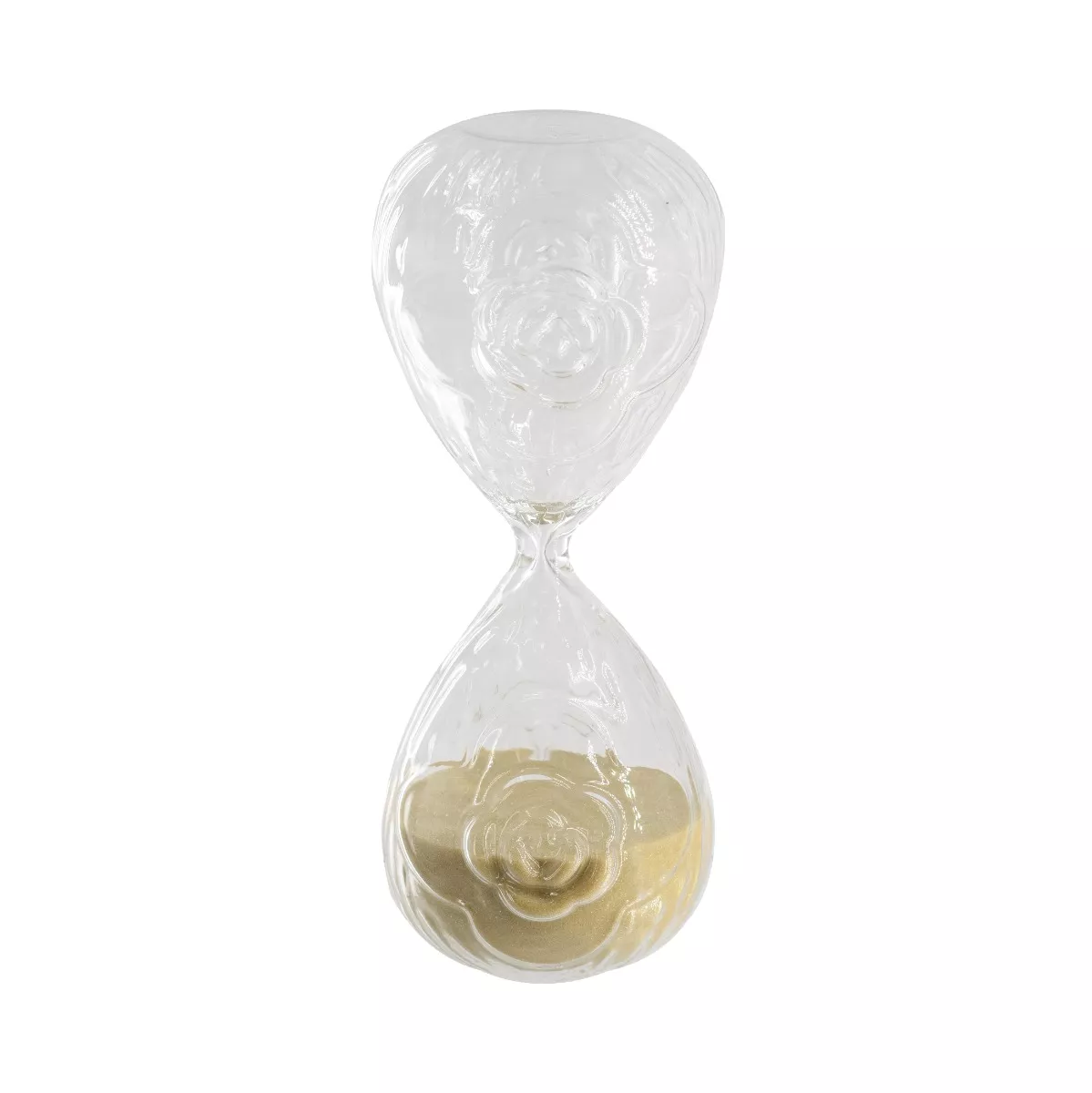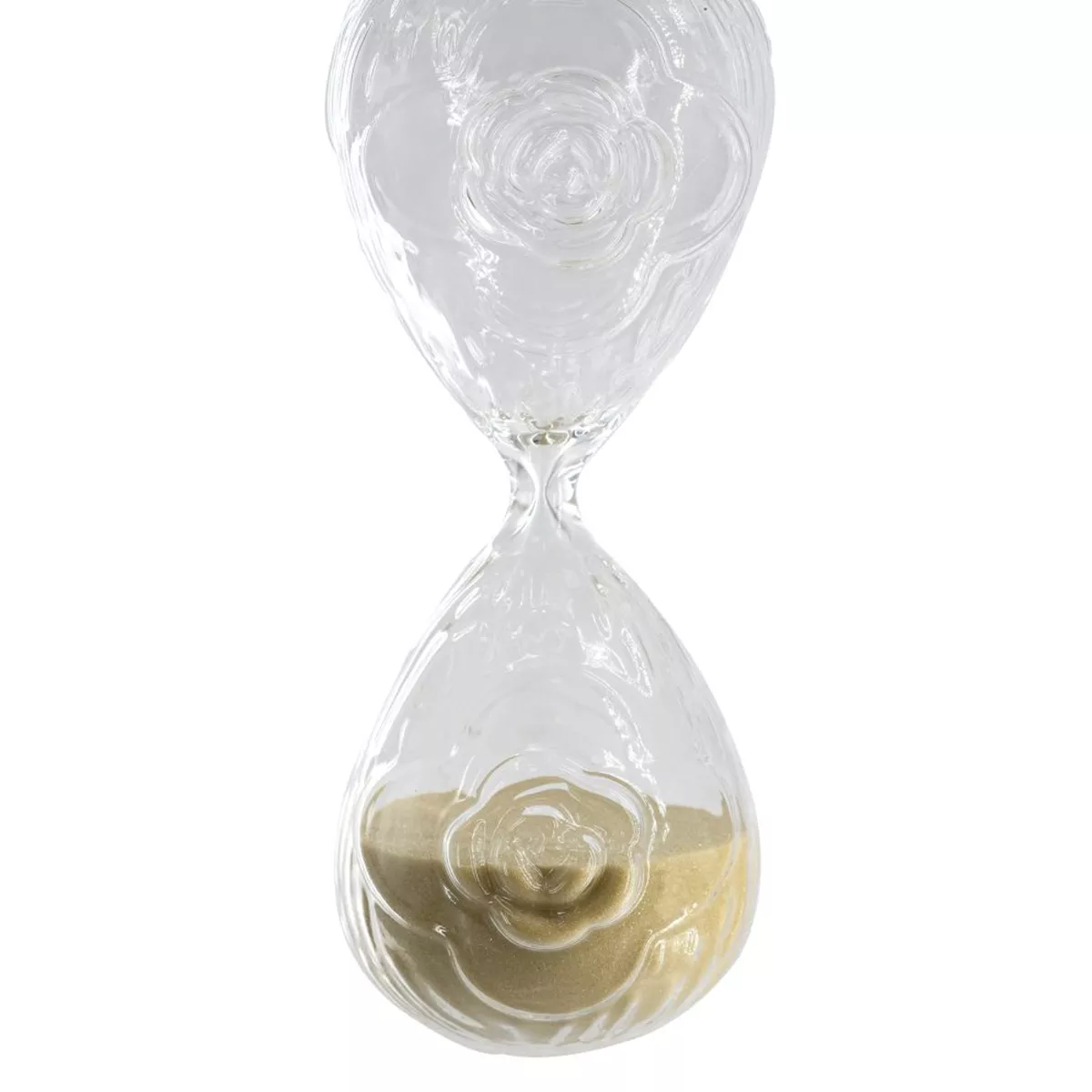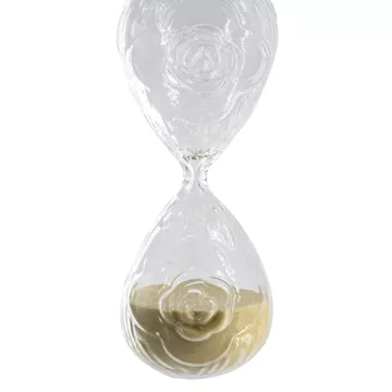Γυάλινη Κλεψύδρα με Ανάγλυφο Τριαντάφυλλο και Μπεζ Άμμο