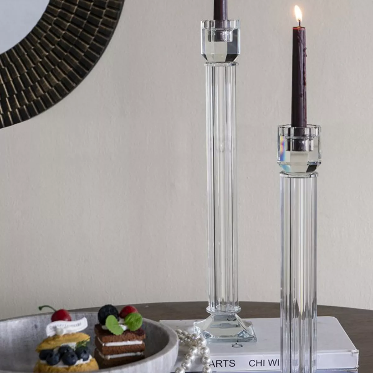 Artekko Glassy Διάφανο Γυάλινο Κηροπήγιο (9x9x46)cm