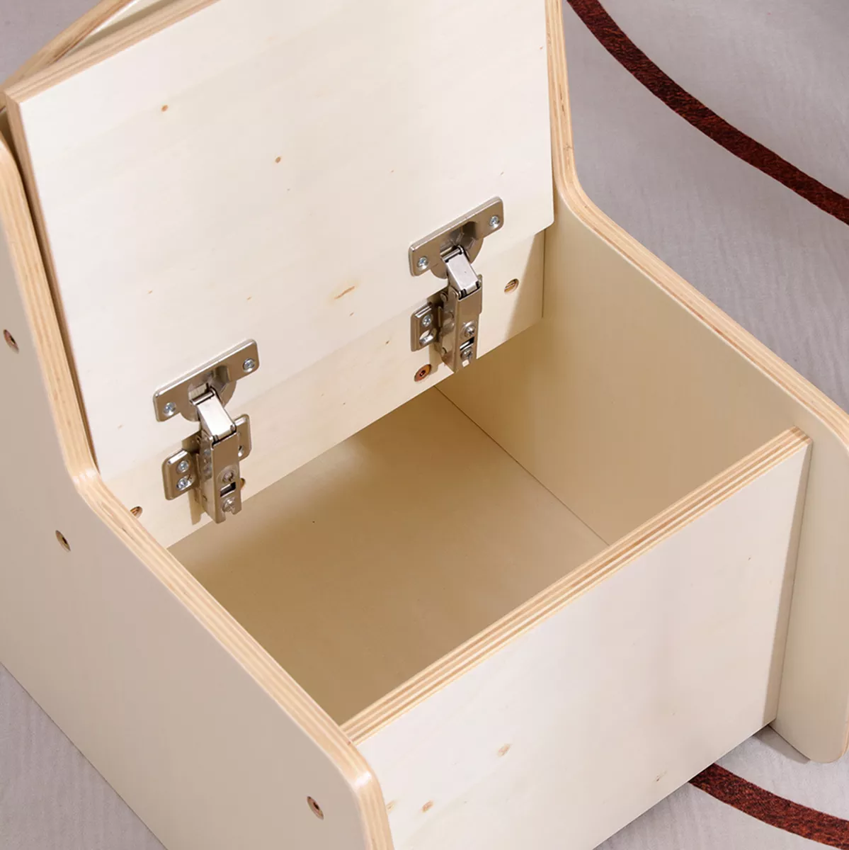 Ο ενσωματωμένος αποθηκευτικός χώρος κάτω από το κάθισμα, που ανασηκώνεται, προσφέρει πρακτική λύση για την οργάνωση παιχνιδιών ή αντικειμένων, διατηρώντας τον χώρο τακτοποιημένο.