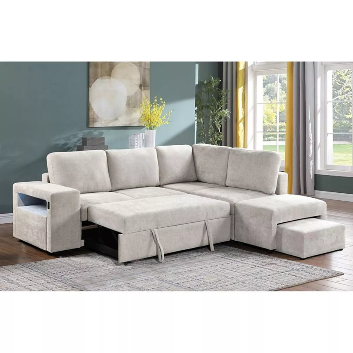 Ε9503,10 FLEXY Καναπές Αριστερή Γωνία-Κρεβάτι-Αποθ.Χώρος+Σκαμπό/Ύφασμα Μπεζ