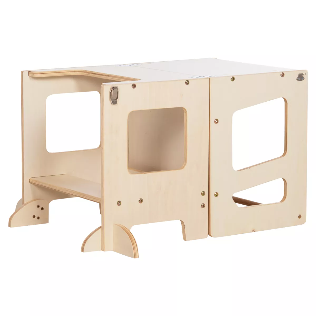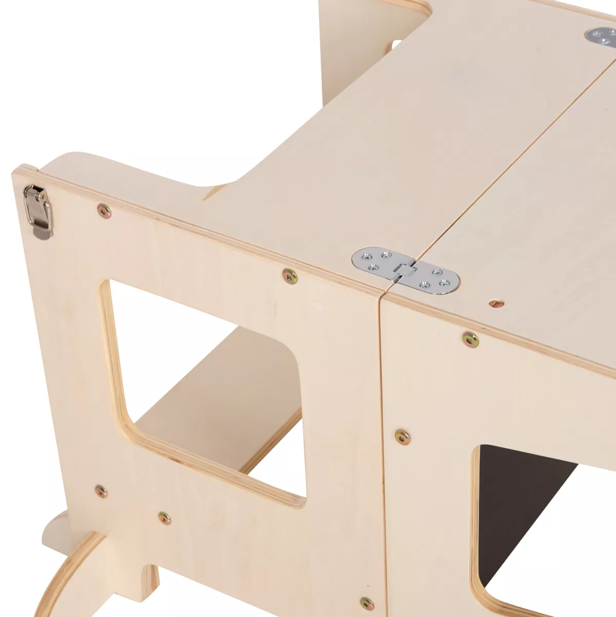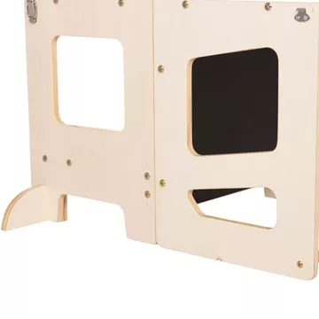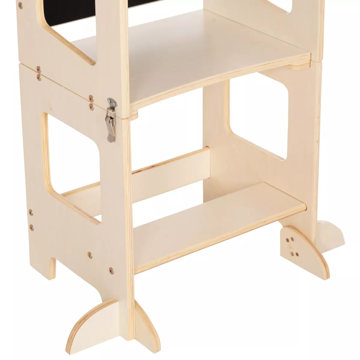 Η ενσωματωμένη επιφάνεια μαυροπίνακα μετατρέπει τον πύργο σε έναν μικρό δημιουργικό χώρο, ενισχύοντας τη φαντασία και τη μάθηση μέσα από το παιχνίδι.