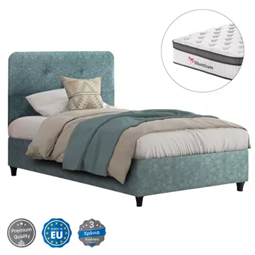 •Ημίδιπλο κρεβάτι DOLORES σε διάσταση για στρώμα 120x200 εκ. Είναι εξολοκλήρου επενδυμένο με ύφασμα τύπου NUBUCK σε LIGHT GREEN χρώμα, ενώ έχει κοντά μαύρα πόδια από πολυπροπυλένιο.