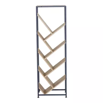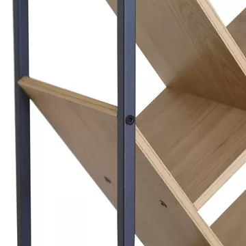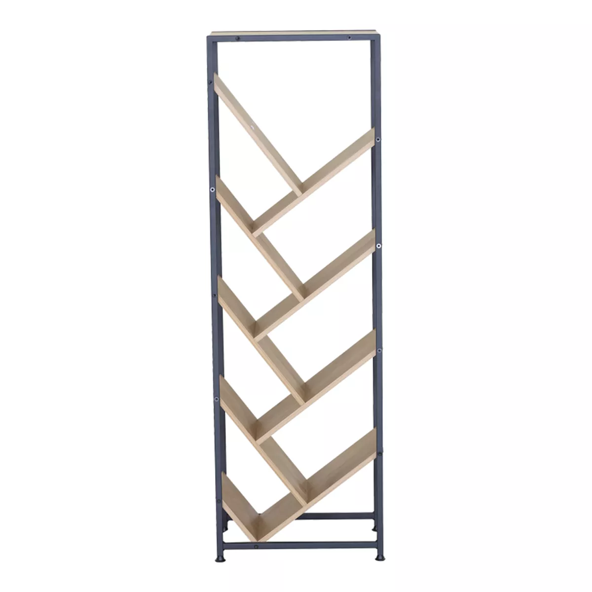 - Ο πρωτοποριακός ασύμμετρος και κεκλιμένος σχεδιασμός των ραφιών μιμείται το σχήμα ενός δέντρου ή ενός ζιγκ-ζαγκ μοτίβου. Αυτή η δομή προσφέρει μια δυναμική και καλλιτεχνική παρουσία, μετατρέποντας την αποθήκευση βιβλίων σε μια σύγχρονη έκθεση.