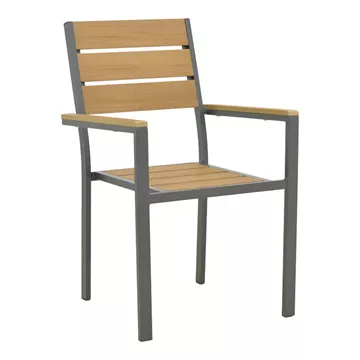 - Plywood: Το plywood είναι ένα σύνθετο υλικό που μοιάζει με ξύλο, κατασκευασμένο από ανακυκλωμένα πλαστικά. Χρησιμοποιείται συνήθως για την κατασκευή εξωτερικών επίπλων, όπως τραπέζια, καρέκλες, ξαπλώστρες και παγκάκια. Είναι εξαιρετικά ανθεκτικό στις καιρικές συνθήκες.