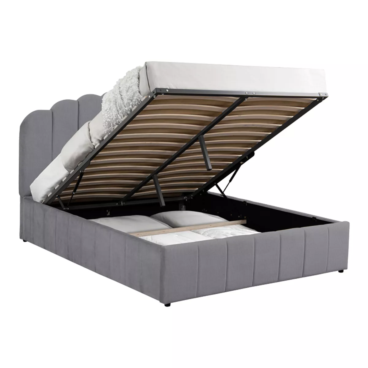 - Έχει μηχανισμό που ανασηκώνει τον σομιέ προσφέροντας μεγάλο αποθηκευτικό χώρο, η βάση του οποίου είναι ντυμένη με αποσπώμενο ύφασμα.