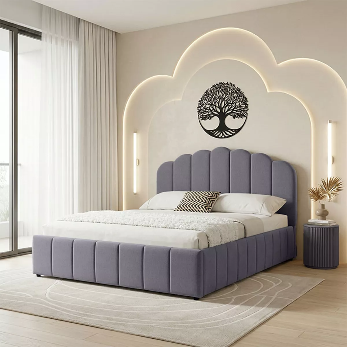 - Το κεφαλάρι είναι διακοσμημένο με ενισχυμένες ραφές σε μοντέρνο μοτίβο, δίνοντας μία αίσθηση πολυτέλειας.