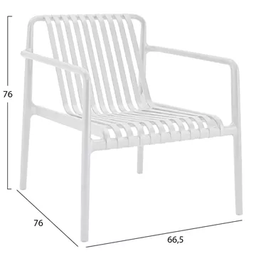 Η κατασκευή από πολυπροπυλένιο υψηλής ποιότητας εξασφαλίζει αντοχή στις καιρικές συνθήκες και στην ηλιακή ακτινοβολία χάρη στην επιπλέον UV προστασία που διαθέτει. Το υλικό δεν σκουριάζει, δεν διαβρώνεται και διατηρεί το χρώμα και τη σταθερότητά του στον χρόνο. Παράλληλα, είναι ελαφρύ αλλά στιβαρό, καθιστώντας την πολυθρόνα εύκολη στη μετακίνηση χωρίς να χάνει σε ανθεκτικότητα.