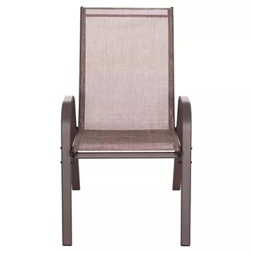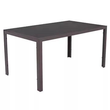 Το Σετ τραπεζαρίας εξωτερικού χώρου LEOFER αποτελείται από ένα τραπέζι με καφέ μεταλλικό σκελετό και γυάλινη ΕΝΙΣΧΥΜΕΝΗ επιφάνεια, kai 4 πολυθρόνες μεταλλικές με textilene σε καφέ χρώμα.