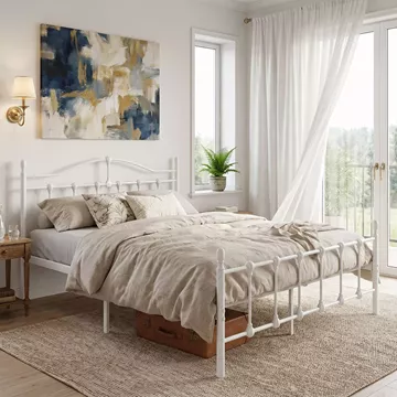 - Κατασκευασμένο από υψηλής ποιότητας μέταλλο με ανθεκτικό λευκό φινίρισμα, αυτό το κρεβάτι είναι σχεδιασμένο για μακροχρόνια χρήση και εύκολη συντήρηση.