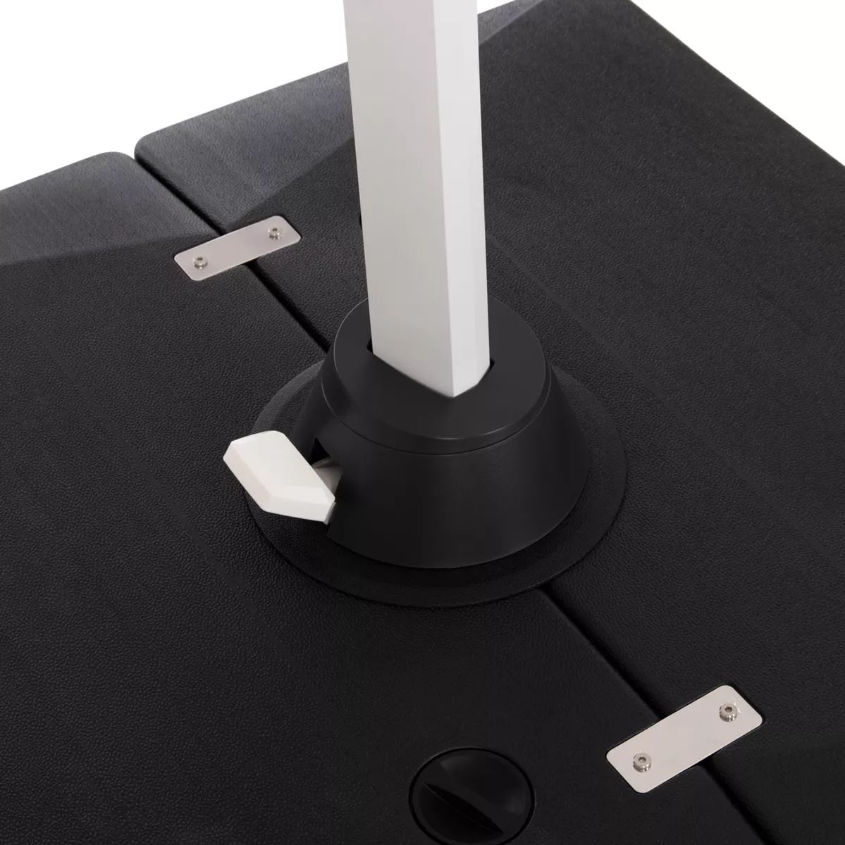 Η ομπρέλα στηρίζεται σε μια βάση νερού από ανθεκτικό ενισχυμένο P.E. (πολυαιθυλένιο), η οποία γεμίζει με νερό ή μίξη νερού και άμμου, φτάνοντας έως και 160kg βάρος, προσφέροντας ισχυρή στήριξη, ενώ διαθέτει και ροδάκια για εύκολη μεταφορά!