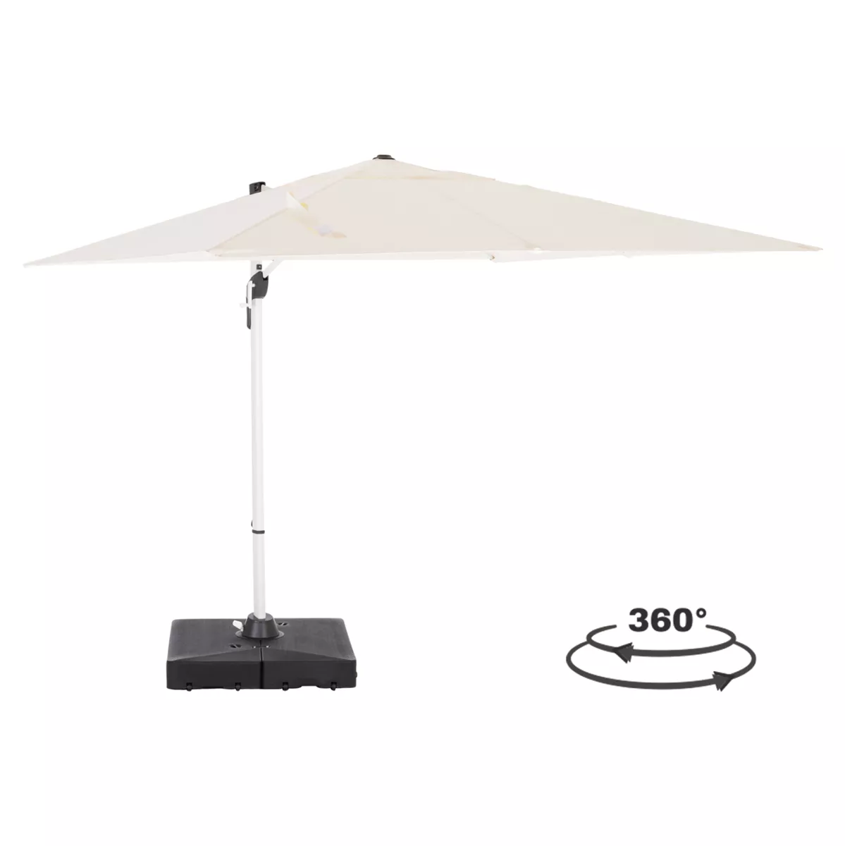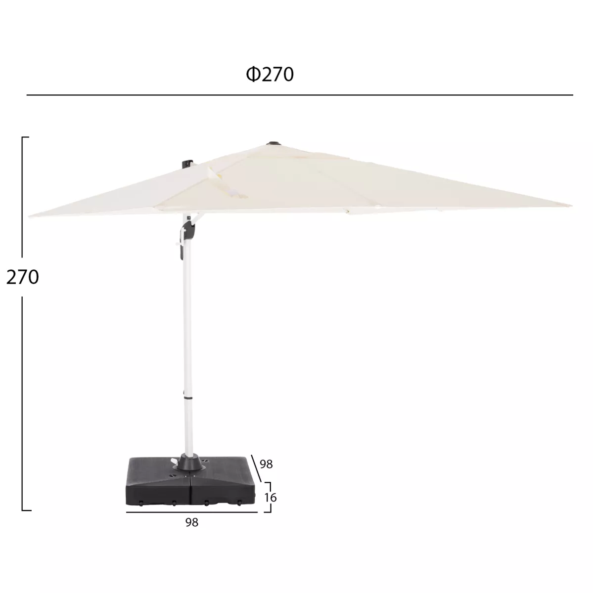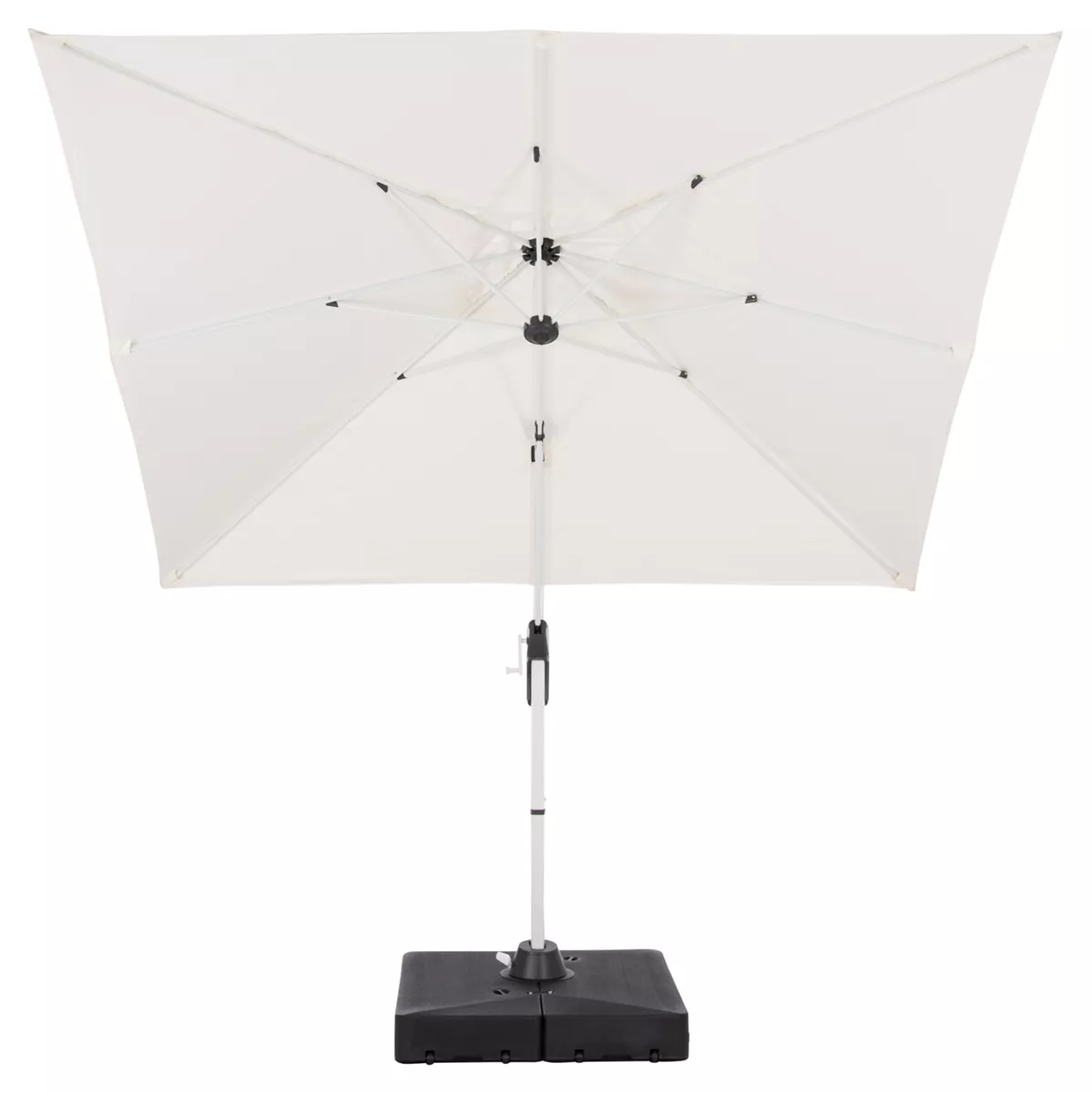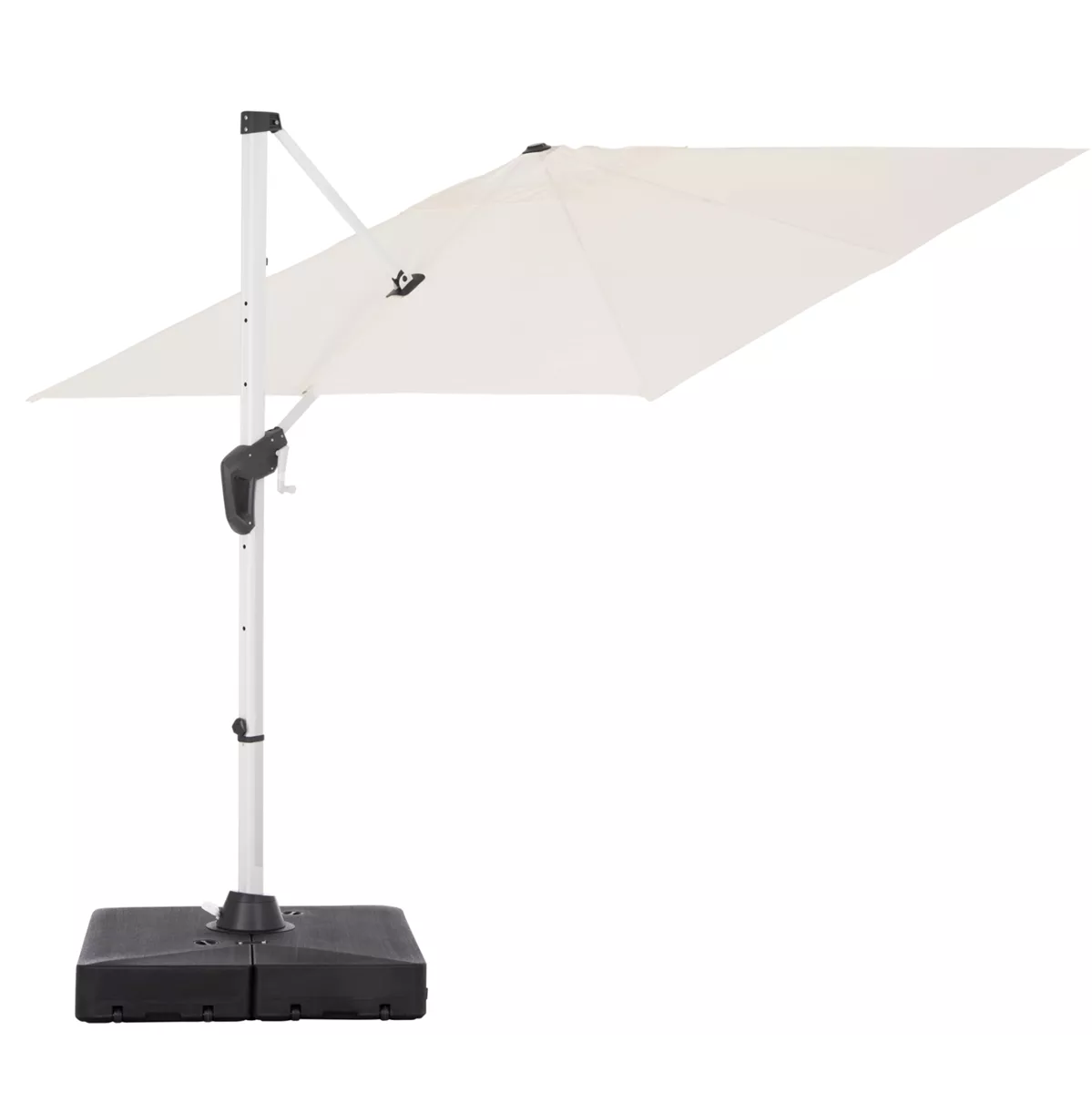Ομπρέλα Αλουμινίου με βάση νερού JAVANTE 2.7x2.7m με Πλευρικό Ιστό (κρεμαστή) & Περιστροφή 360° – ΛΕΥΚΟ πανί