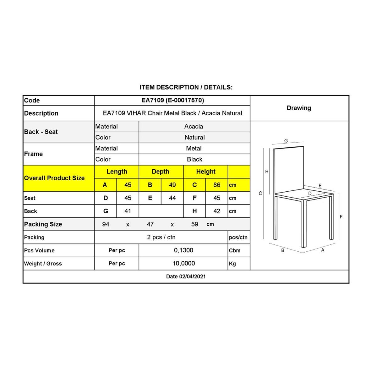 ΕΑ7109 VIHAR Καρέκλα Ακακία Φυσικό