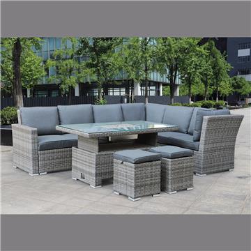 BOOZER Set Σαλόνι-Τραπεζαρ.ALU Τραπέζι ανυψούμενο+2τ 3θ Γωνία +2τ Σκαμπό, Γκρι - Ανθρακί