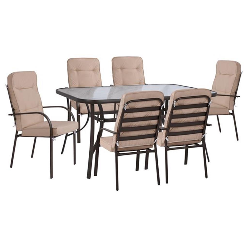 Έξι πολυθρόνες εξωτερικού χώρου Endika σε καφέ απόχρωση.