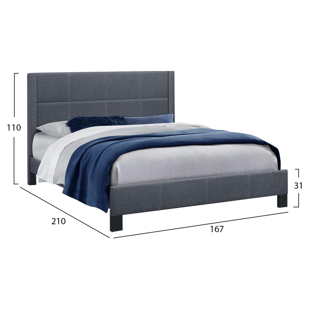 Γνωρίστε το υπέρδιπλο κρεβάτι TRILLOP. Διαθέτει ψηλό κεφαλάρι, επενδυμένο με καπιτονέ τεχνοτροπία σε μεγάλα τετράγωνα, ενώ και όλη η επένδυση του κρεβατιού είναι από ανάγλυφο ύφασμα. Το ΓΚΡΙ χρώμα σε όλο το κρεβάτι είναι όμορφο και ουδέτερο και μπορεί να συνδυαστεί με πληθώρα διακοσμητικών μοτίβων. Η στήριξη του στρώματος γίνεται με 14 κλασικές τάβλες. Ιδανικό κρεβάτι τόσο για το σπίτι, όσο και για επαγγελματικούς χώρους, όπως ξενοδοχεία και Airbnb. Άλλωστε, ακόμα κι η συναρμολόγησή του είναι πανεύκολη, αφού βιδώνετε τα πόδια στα υποστρώματα και στην συνέχεια προσαρμόζετε το κεφαλάρι. Απλά και όμορφα φτιάχνετε το υπνοδωμάτιο των ονείρων σας!