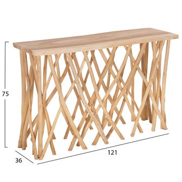 Η κονσόλα είναι κατασκευασμένη από μασίφ κλαδιά του δέντρου ΤΕΑΚ. Το μασίφ συνιστά ένα είδος ξύλου, καθαρό και ατόφιο, που παραδοσιακά χρησιμοποιούν οι μαραγκοί για την κατασκευή επίπλων. Το μασίφ είναι η πιο ακριβή επιλογή σε είδος ξύλου αλλά ξεχωρίζει για την διαχρονική αισθητική του. Το αποτέλεσμα που προσφέρει στον κάτοχό του είναι πραγματικά μοναδικό.