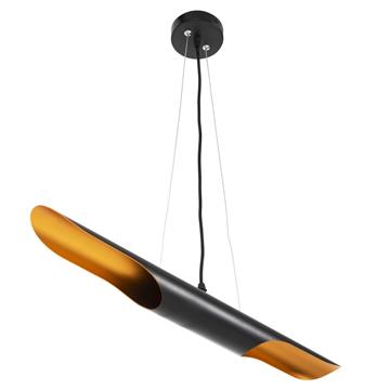 Το HΜ4172 είναι μια από τις καινούργιες προσθήκες στην γκάμα μας. Το κρεμαστό αυτό φωτιστικό είναι ένας μαύρος σωλήνας κρεμασμένος με 2 ασημί σύρματα από την οροφή. Παίρνει 2 λάμπες στις δύο πλευρές του σωλήνα, ενώ το εσωτερικό είναι σε πορτοκαλί χρώμα δίνοντας μια όμορφη εικόνα στον χώρο.