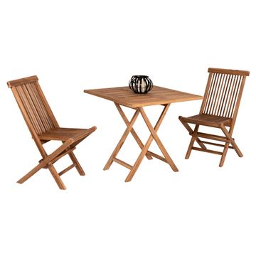 Το σετ τραπεζαρίας KENDALL για εξωτερικούς χώρους είναι πανέμορφο. Αποτελείται από ένα αναδιπλούμενο τετράγωνο τραπέζι κατασκευασμένο από ποιοτικό ξύλο στο ΦΥΣΙΚΟ του χρώμα με ικανοποιητικές διαστάσεις για τουλάχιστον 2 άτομα, και 2 αναδιπλούμενες καρέκλες της ίδιας σειράς. Ιδανικό τόσο για το σπίτι, όσο και για επαγγελματικούς χώρους!