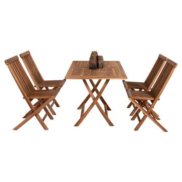 Το σετ τραπεζαρίας 5τμχ KENDALL για εξωτερικούς χώρους είναι πανέμορφο. Αποτελείται από ένα αναδιπλούμενο ορθογώνιο τραπέζι κατασκευασμένο από ποιοτικό ξύλο στο ΦΥΣΙΚΟ του χρώμα με ικανοποιητικές διαστάσεις για τουλάχιστον 4 άτομα, και 4 καρέκλες αναδιπλούμενες, όλα από την ίδια σειρά επίπλων. Ιδανικό τόσο για το σπίτι, όσο και για επαγγελματικούς χώρους!
