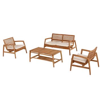 Σας παρουσιάζουμε το όμορφο και νέο σετ εξωτερικού χώρου DOVER σε ΦΥΣΙΚΟ χρώμα, με τραπεζάκι, 2 πολυθρόνες και 1 διθέσιο καναπέ. Ένα σετ που θα το λατρέψετε με την πρώτη ματιά. Όλο το σετ είναι κατασκευασμένο από ξύλο ΤΕΑΚ. Ειδικά, οι πολυθρόνες έχουν φαρδύ και κοντό κάθισμα ενώ η πλάτη τους έχει μια ελαφριά κλίση προς τα πίσω πράγμα που επιτείνει την άνεση που προσφέρουν, σε συνδυασμό με τα αναπαυτικά μαξιλάρια στο κάθισμα. Τα μαξιλάρια σε όλο το σετ είναι επενδυμένα με ποιοτικό ύφασμα σε ΛΕΥΚΟ χρώμα και διαθέτουν γέμισμα με μέτριας σκληρότητας αφρώδη υλικά για την μεγαλύτερη δυνατή άνεση. Τι άλλο να ζητήσει κανείς για να αναβαθμίσει τον κήπο, το μπαλκόνι ή την αυλή του;