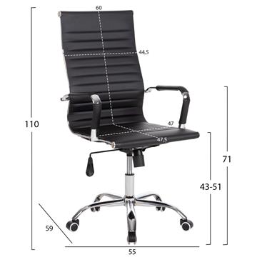 Η αισθητική υπεροχή αυτής της καρέκλας με το συνεχόμενο PU δέρμα σε κάθισμα και πλάτη χωρίς γέμισμα με αφρώδη υλικά θα αιχμαλωτίσει το βλέμμα αλλά και την φαντασία όλων όσοι την κοιτάξουν. Οι ανατομικές καμπύλες αλλά και οι ρυθμίσεις ύψους μέσω ενός καλαίσθητου μεταλλικού μοχλού αλλά και ανάκλισης καθίσματος μέσω του περιστροφικού μοχλού κάτω από το κάθισμα, αποτελούν μια μοντέρνα και ολοκληρωμένη πρόταση για τον χώρο του γραφείου.