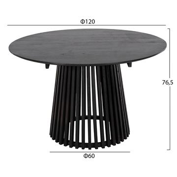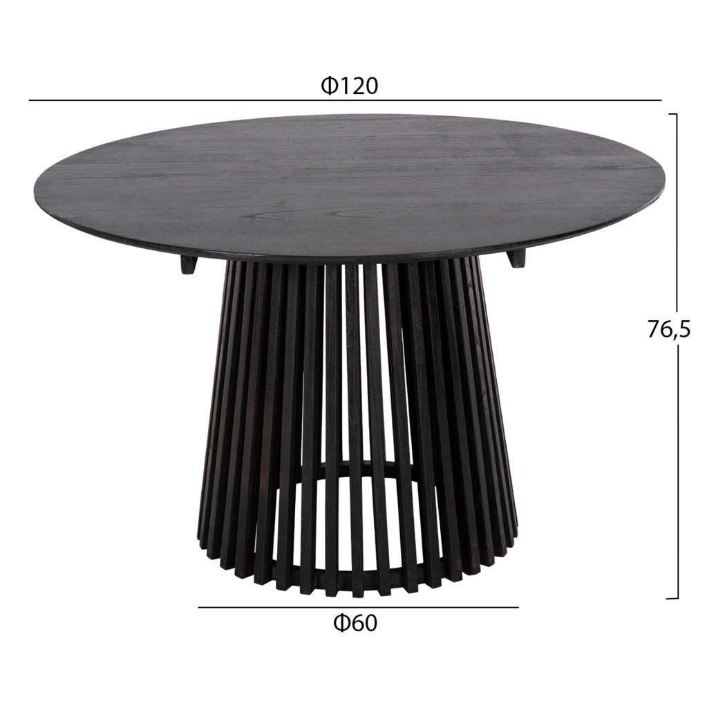 Το FRANTZ είναι ένα στρογγυλό τραπέζι με φαλτσοκομμένη επιφάνεια για την τραπεζαρία, με ικανοποιητικές διαστάσεις σε ΜΑΥΡΟ χρώμα. Η επιφάνεια στηρίζεται σε μια ξύλινη κατασκευή στο κέντρο με πολλές δοκούς σε κυκλική διάταξη που ενώνονται μεταξύ τους με δακτυλίους στην εσωτερική πλευρά. Αυτό το τραπέζι θα αναβαθμίσει αισθητικά την τραπεζαρία σας ενώ μπορεί να ταιριάξει με πολλά διαφορετικά στυλ και χρώματα στον τριγύρω χώρο, όπως και με διαφορετικά στυλ καρέκλας.