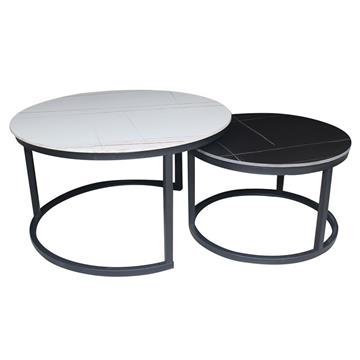 ΕΜ526,S TERRY Set-2 Τρ.Σαλονιού Μετ.Μαύρο/Sintered Stone Φ80cm+Φ60cm/White-Black Marble