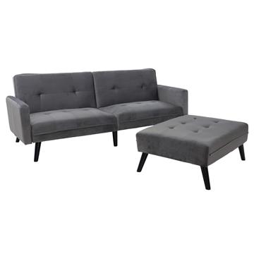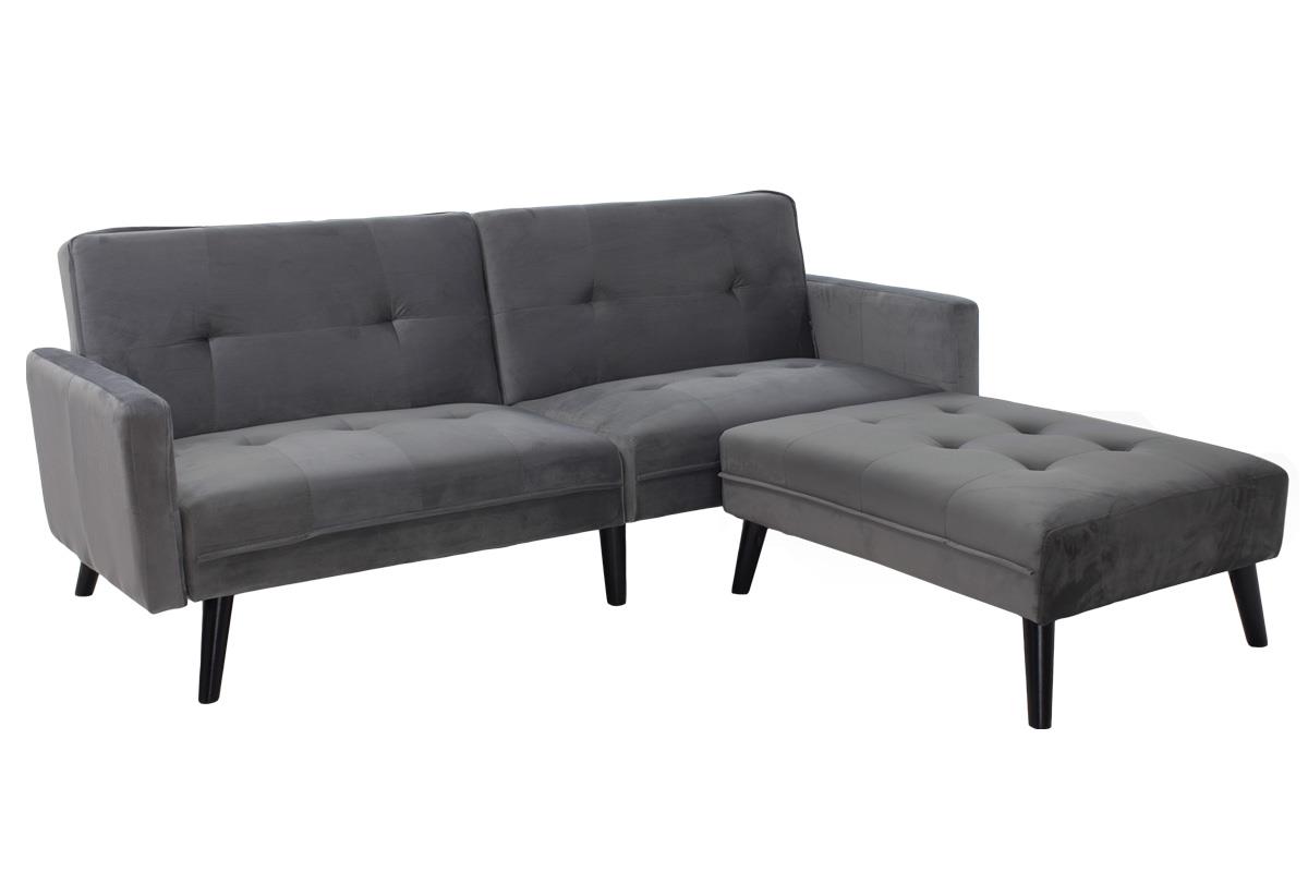 Ένας καναπές σχεδιασμένος με μοντέρνο design που αποπνέει πολυτέλεια, φέρει εύχρηστο μεταλλικό μηχανισμό ώστε να μετατρέπεται με μία απλή κίνηση σε κρεβάτι. Και εξτρά μεγάλο σκαμπό που αποτελεί προέκταση του καναπέ για να χαλαρώσετε ή να ξαπλώσετε.