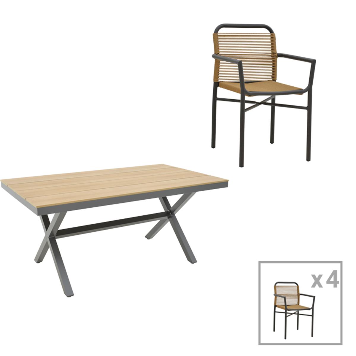 Τραπεζαρία Clutch -Thorio σετ 5τεμ pakoworld ανθρακί αλουμίνιο και plywood σε φυσική απόχρωση 160x90x75εκ