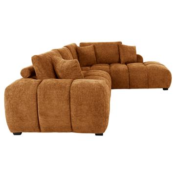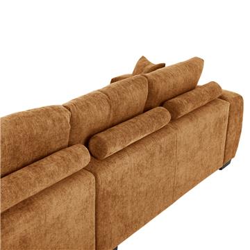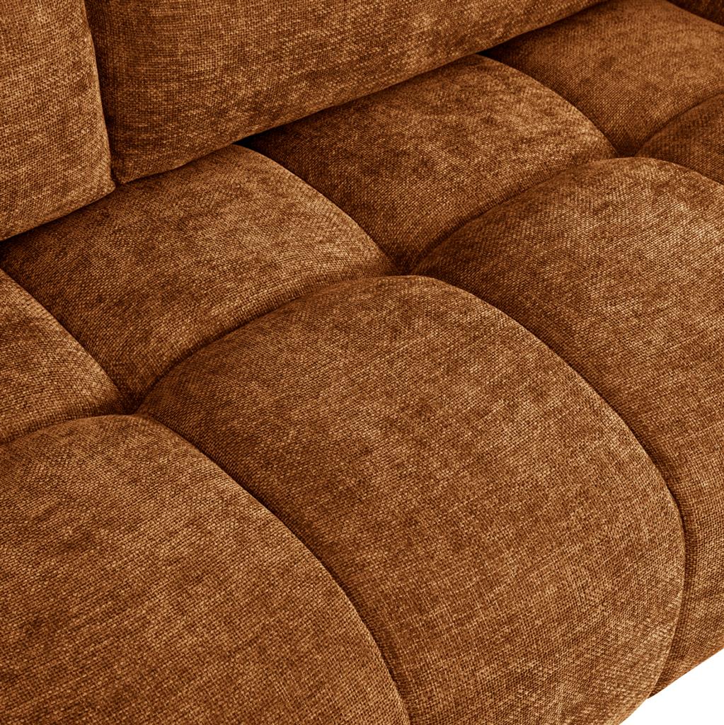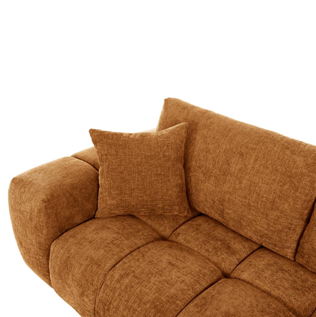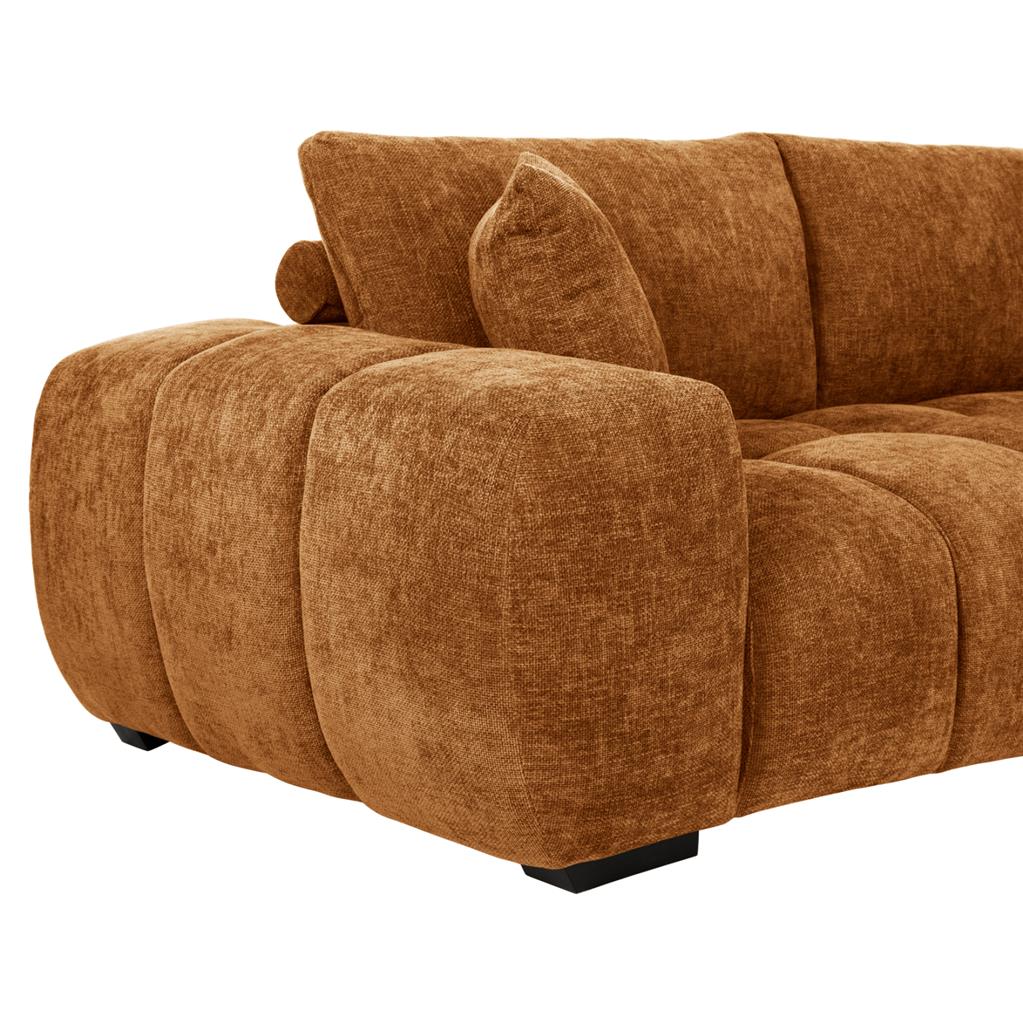 Σας παρουσιάζουμε τον COVEN, έναν υπέροχο μεγάλο καναπέ σε διαμόρφωση ΔΕΞΙΑΣ γωνίας (όπως τον κοιτάς) επενδυμένο με ποιοτικό ύφασμα σε χρώμα ΜΠΕΖ ΤΗΣ ΑΜΜΟΥ. Ξεκινώντας από το design, ο καναπές φτάνει μέχρι πολύ χαμηλά σε στυλ «ποδιάς» και διαθέτει φαρδιά χαμηλά πόδια-βάσεις σε μαύρο χρώμα. Τα μπράτσα είναι εντυπωσιακά φαρδιά, ενώ η επένδυση είναι σε στυλ καπιτονέ με τις έντονες ραφές! Το κομμάτι που σχηματίζει την γωνία είναι ίδιας αισθητικής και ενώνεται με τον κυρίως καναπέ με κατακόρυφους αναρτήρες πάνελ. Η πλάτη είναι χαμηλή και διαθέτει 4 μαξιλάρια πλάτης με «καραμέλες»(μακρόστενα κυλινδρικά μαξιλάρια) στο πίσω μέρος τους για καλύτερη στήριξη, αλλά και 3 μικρότερα διακοσμητικά μαξιλαράκια. Το κάθισμα διαθέτει γεμίσματα αφρού μεσαίας σκληρότητας σε συνδυασμό με ελατήρια pocket springs, προσφέροντας απαράμιλλη άνεση. Και φυσικά, σας προσφέρουμε αυτόν τον καναπέ με εγγύηση σκελετού 3 ετών!