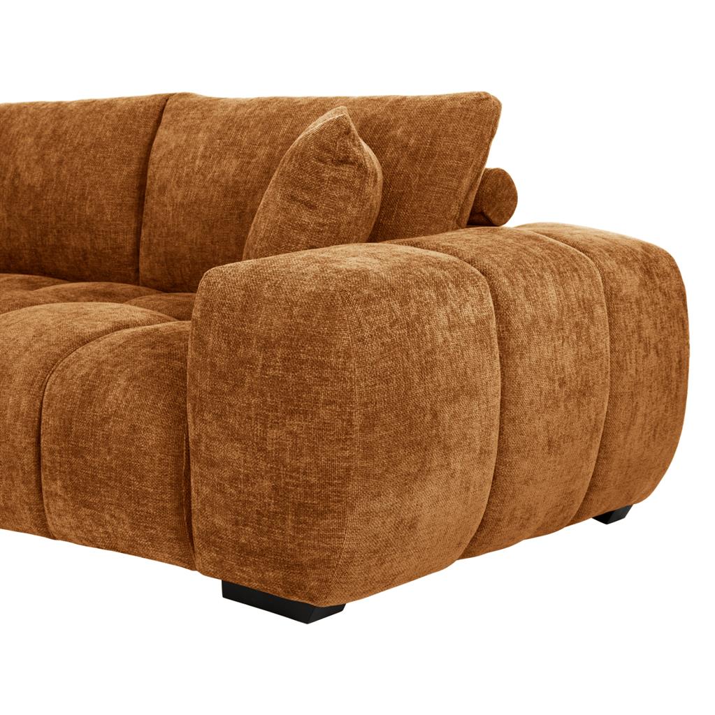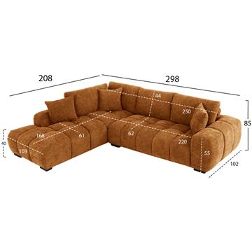 Σας παρουσιάζουμε τον COVEN, έναν υπέροχο μεγάλο καναπέ σε διαμόρφωση ΑΡΙΣΤΕΡΗΣ γωνίας (όπως τον κοιτάς) επενδυμένο με ποιοτικό ύφασμα σε χρώμα ΜΠΕΖ ΤΗΣ ΑΜΜΟΥ. Ξεκινώντας από το design, ο καναπές φτάνει μέχρι πολύ χαμηλά σε στυλ «ποδιάς» και διαθέτει φαρδιά χαμηλά πόδια-βάσεις σε μαύρο χρώμα. Τα μπράτσα είναι εντυπωσιακά φαρδιά, ενώ η επένδυση είναι σε στυλ καπιτονέ με τις έντονες ραφές! Το κομμάτι που σχηματίζει την γωνία είναι ίδιας αισθητικής και ενώνεται με τον κυρίως καναπέ με κατακόρυφους αναρτήρες πάνελ. Η πλάτη είναι χαμηλή και διαθέτει 4 μαξιλάρια πλάτης με «καραμέλες»(μακρόστενα κυλινδρικά μαξιλάρια) στο πίσω μέρος τους για καλύτερη στήριξη, αλλά και 3 μικρότερα διακοσμητικά μαξιλαράκια. Το κάθισμα διαθέτει γεμίσματα αφρού μεσαίας σκληρότητας σε συνδυασμό με ελατήρια pocket springs, προσφέροντας απαράμιλλη άνεση. Και φυσικά, σας προσφέρουμε αυτόν τον καναπέ με εγγύηση σκελετού 3 ετών!