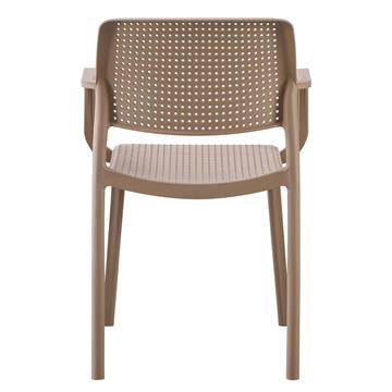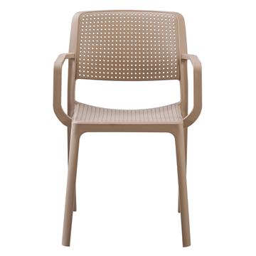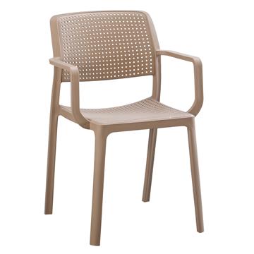 Η πολυθρόνα COMFEE έχει όλα όσα θα θέλατε από ένα τέτοιο έπιπλο. Είναι κατασκευασμένη από μονοκόμματο πολυπροπυλένιο σε ΚΑΠΟΥΤΣΙΝΟ χρώμα με ελαφρώς κυρτή πλάτη, η οποία όπως και το κάθισμα έχουν «τρυπητό» σχέδιο. Όλη η κατασκευή είναι ελαφριά και άνετη με ψηλά μπράτσα, και θα γίνει το αγαπημένο κάθισμα σε όποιο χώρο κι αν τοποθετηθεί χάρη στην πρακτικότητά του. Ιδανική επιλογή και για επαγγελματική χρήση, όπως σε catering κτλ.