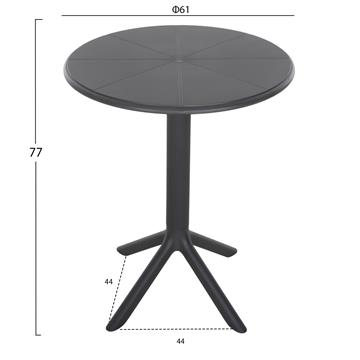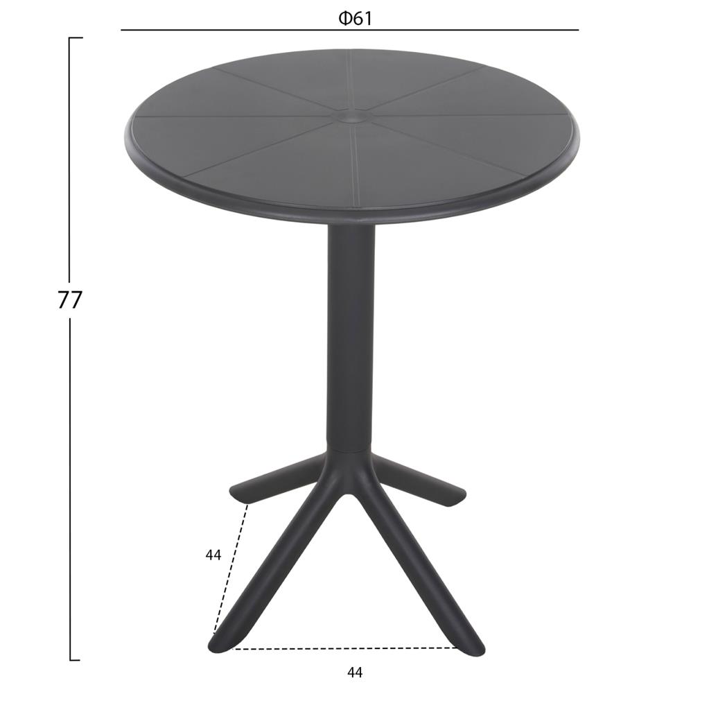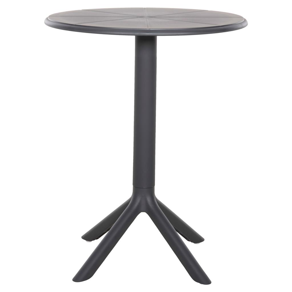 Το τραπέζι πολυπροπυλενίου TERRIN σε ΓΚΡΙ χρώμα είναι η ιδανική πρόταση για χρήση σε εξωτερικούς χώρους, είτε επαγγελματικούς (χώροι δεξιώσεων, εταιρείες catering, κλπ.) είτε για το σπίτι. Το τραπέζι είναι στρογγυλό, ενώ η στήριξη γίνεται με μια κολώνα στο κέντρο που καταλήγει σε 4 πόδια («νύχια»).