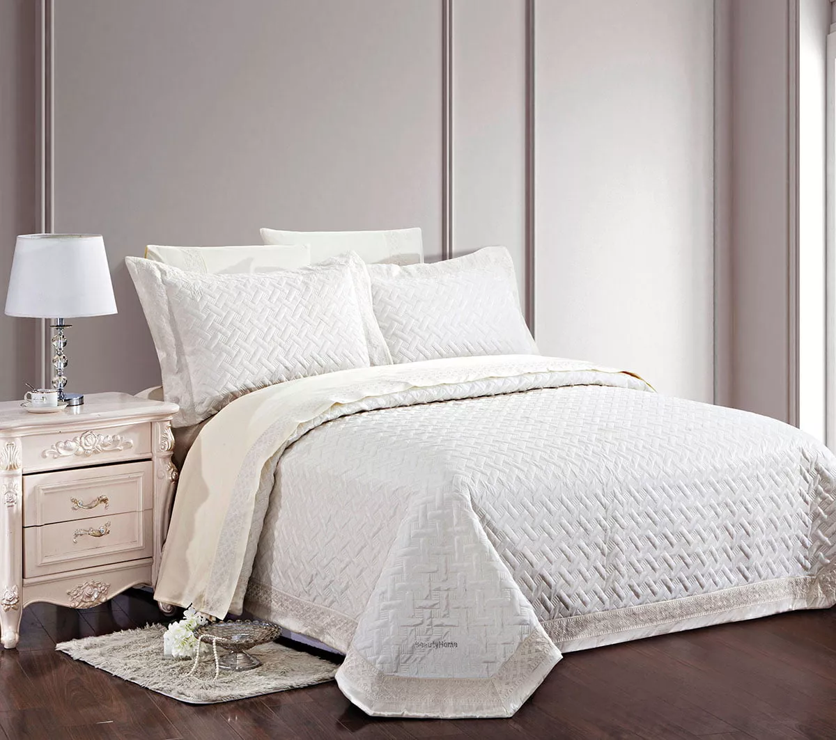Νυφική βαλίτσα σετ 7 τμχ Phebe. Το σετ περιλαμβάνει 1 βαλίτσα λευκή που περιέχει: 1 τεμάχιο κουβερλί σε διάσταση 230x250, 1 τεμάχιο πανωσέντονο σε διάσταση 240x260, 1 τεμάχιο κατωσέντονο σε διάσταση 240x260 και 4 τεμάχια μαξιλαροθήκες σε διάσταση 50x70. Η ποιότητά του είναι microfiber κεντημένο