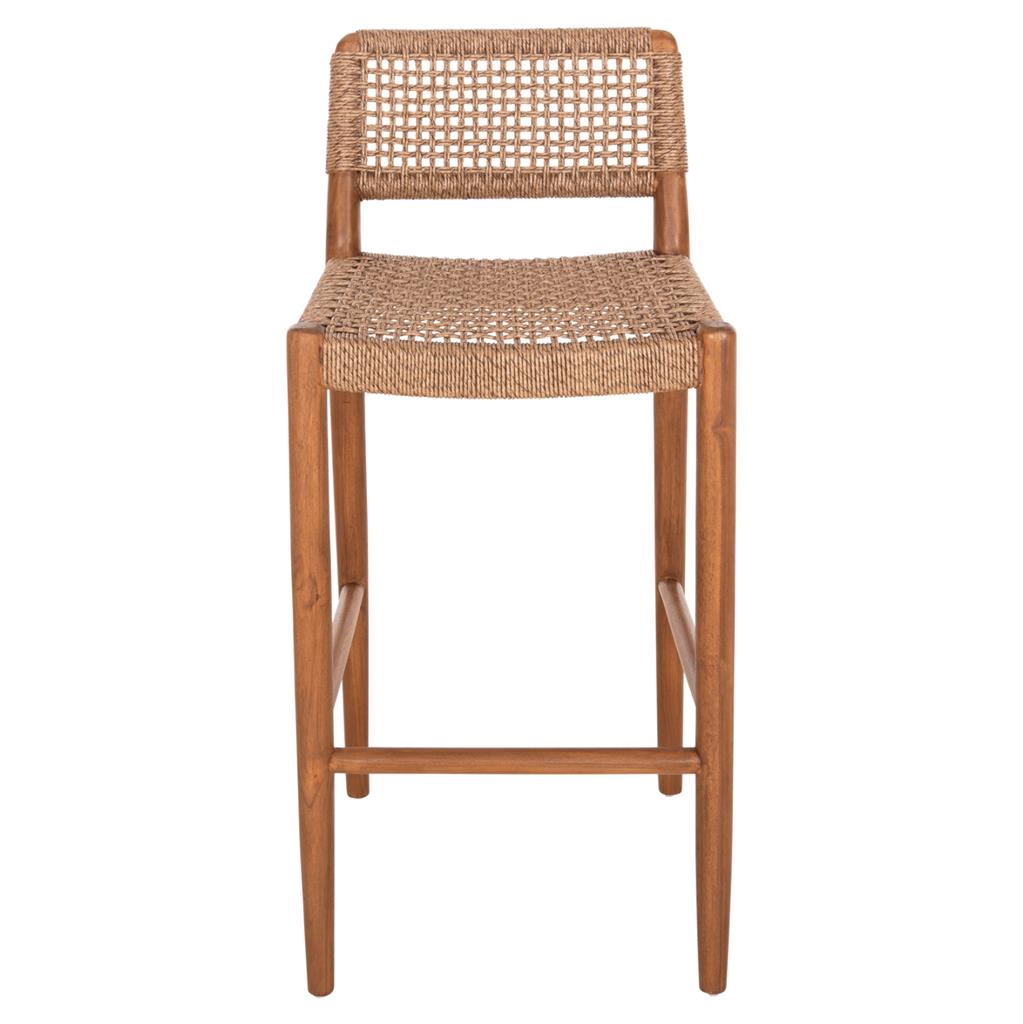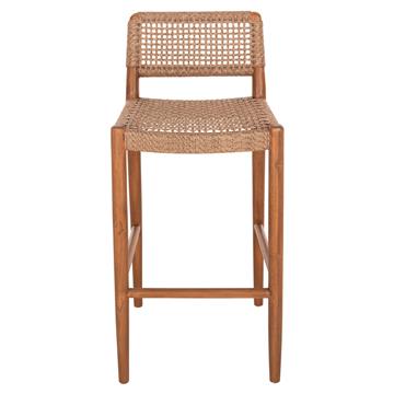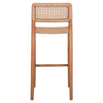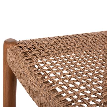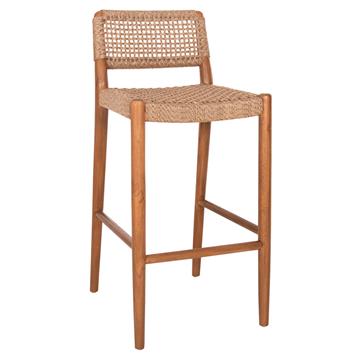 Το σκαμπό μπαρ ROSCO με το ψηλό κάθισμα διαθέτει σκελετό από ποιοτικό ξύλο σε ΚΑΡΥΔΙ χρώμα, ενώ τόσο η κοντή πλάτη όσο και το φαρδύ κάθισμα αποτελούνται από αριστοτεχνικά πλεγμένο VIRO σχοινί σε ΚΑΦΕ χρώμα. Οι σχεδιαστικές γραμμές είναι κομψές και με γνώμονα την άνεση του χρήστη, με χαρακτηριστικό παράδειγμα την ύπαρξη των συνδέσεων των ποδιών του σκαμπό, που χρησιμεύουν και ως υποπόδια.