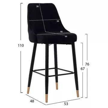 Το σκαμπό SERENITY είναι επενδυμένο με ύφασμα βελούδο σε μαύρη απόχρωση με μεταλλικό σκελετό σε μαύρη ματ απόχρωση και χρυσές λεπτομερείς.