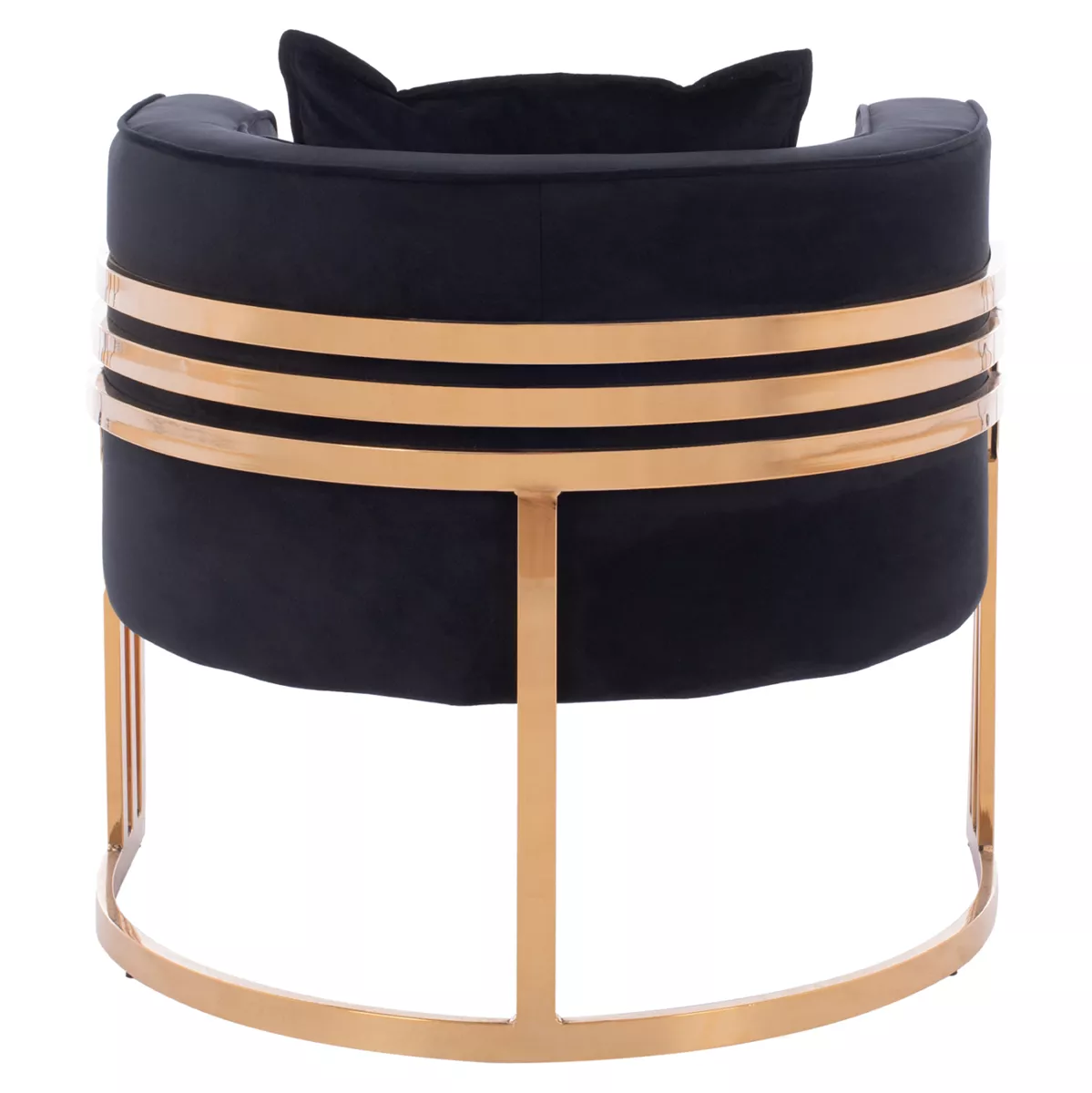 Η στιβαρή κατασκευή της πολυθρόνας με την χρυσή μεταλλική στήριξη σε συνδυασμό με το μαύρο βελούδο, την καθιστούν ιδανική επιλογή για επαγγελματικούς χώρους και κυρίως για χώρους ξενοδοχείων, εστίασης, AirBnB κτλ, στους οποίους η αισθητική υπεροχή του βελούδου θα κάνει την διαφορά.