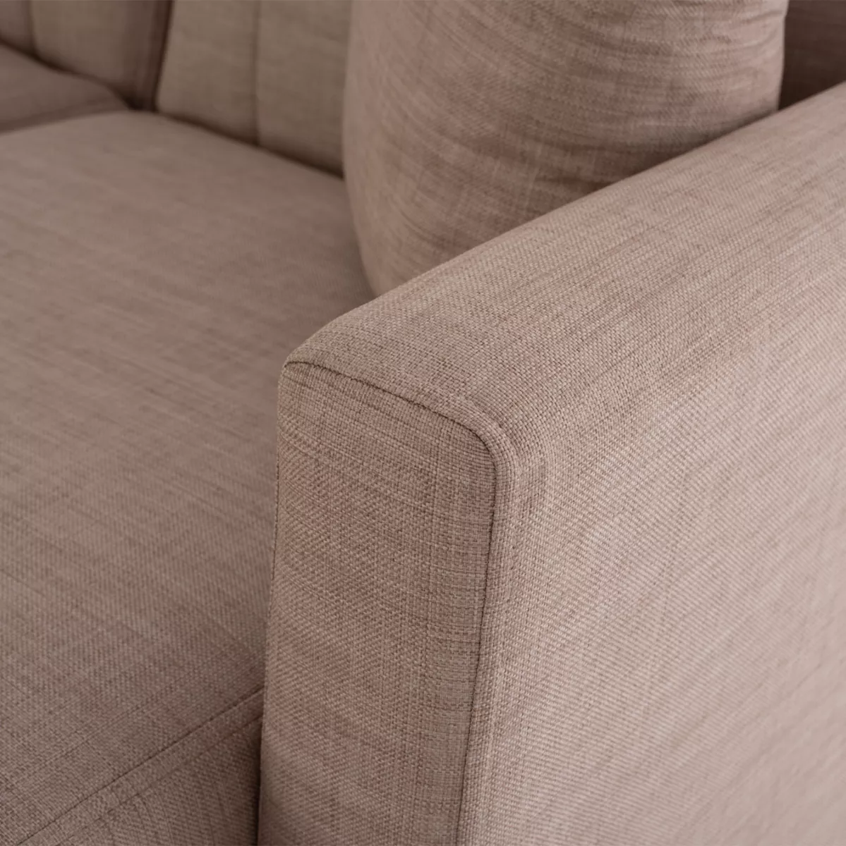 Η επένδυση του κρεβατιού έχει γίνει με ύφασμα εξαιρετικής ποιότητας, ενώ τα γεμίσματα τόσο στο κάθισμα, όσο και στην πλάτη είναι από μέτριας σκληρότητας αφρώδες υλικό που προσφέρει άνεση και ποιότητα στον ύπνο, όταν μετατρέπεται σε κρεβάτι.
