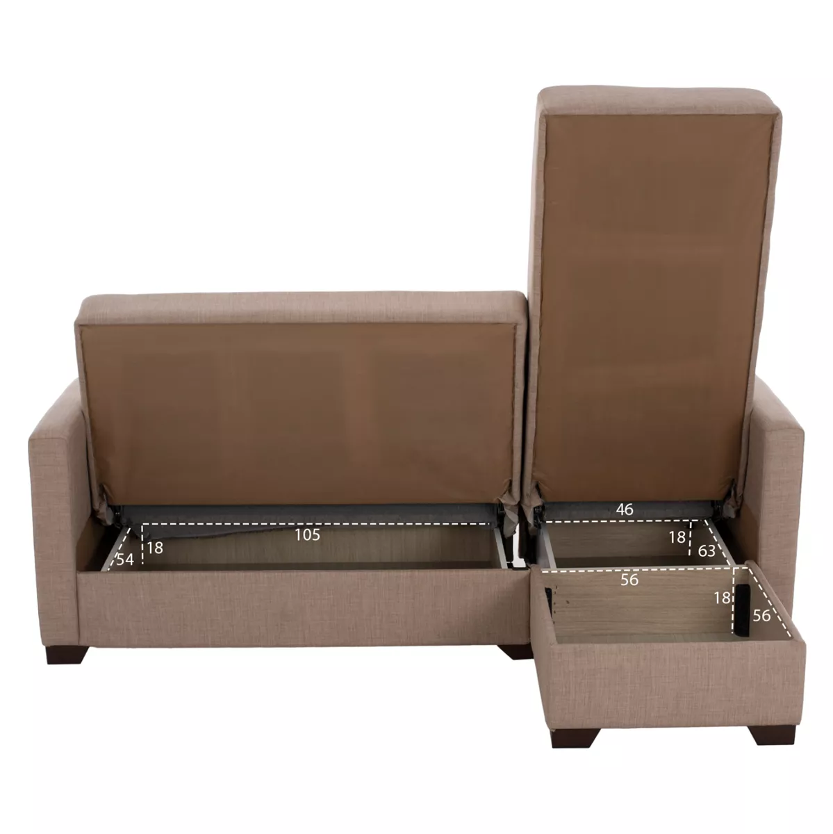 Γιατί, αυτό είναι και το κύριο χαρακτηριστικό αυτού του καναπέ. Εκτός από γωνιακός, γίνεται και κρεβάτι μέσω ενός εύκολου στην χρήση μηχανισμού «κλικ-κλακ». Κι επειδή ο καναπές μπορεί να στηθεί είτε σε αριστερή, είτε σε δεξιά γωνία, η χρησιμότητά του αλλά και η λειτουργικότητά του ξεπερνούν τα συνηθισμένα. Και σαν να μην έφτανε αυτό, κάτω από τα καθίσματα υπάρχουν αποθηκευτικοί χώροι που πάντα είναι χρήσιμοι σε οποιοδήποτε σπίτι κι αν τοποθετηθεί ο καναπές.
