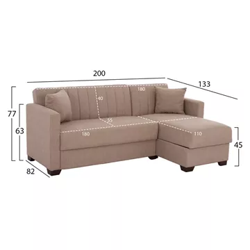 Ένα ακόμα σπουδαίο χαρακτηριστικό του καναπέ είναι ότι η πλευρά που σχηματίζει την γωνία μπορεί να «αποκοπεί» και να χρησιμοποιηθεί σαν ξεχωριστή πολυθρόνα ή ανάκλιντρο! Τέλος, τα πόδια του καναπέ είναι φαρδιά και χαμηλά δίνοντας στιβαρότητα σε όλη την κατασκευή.
