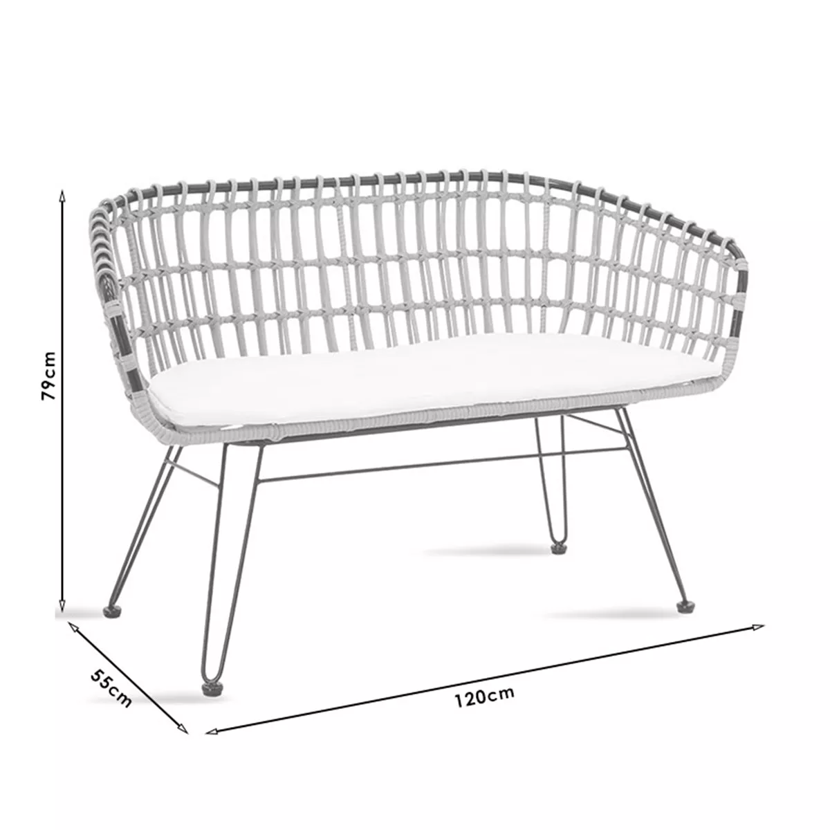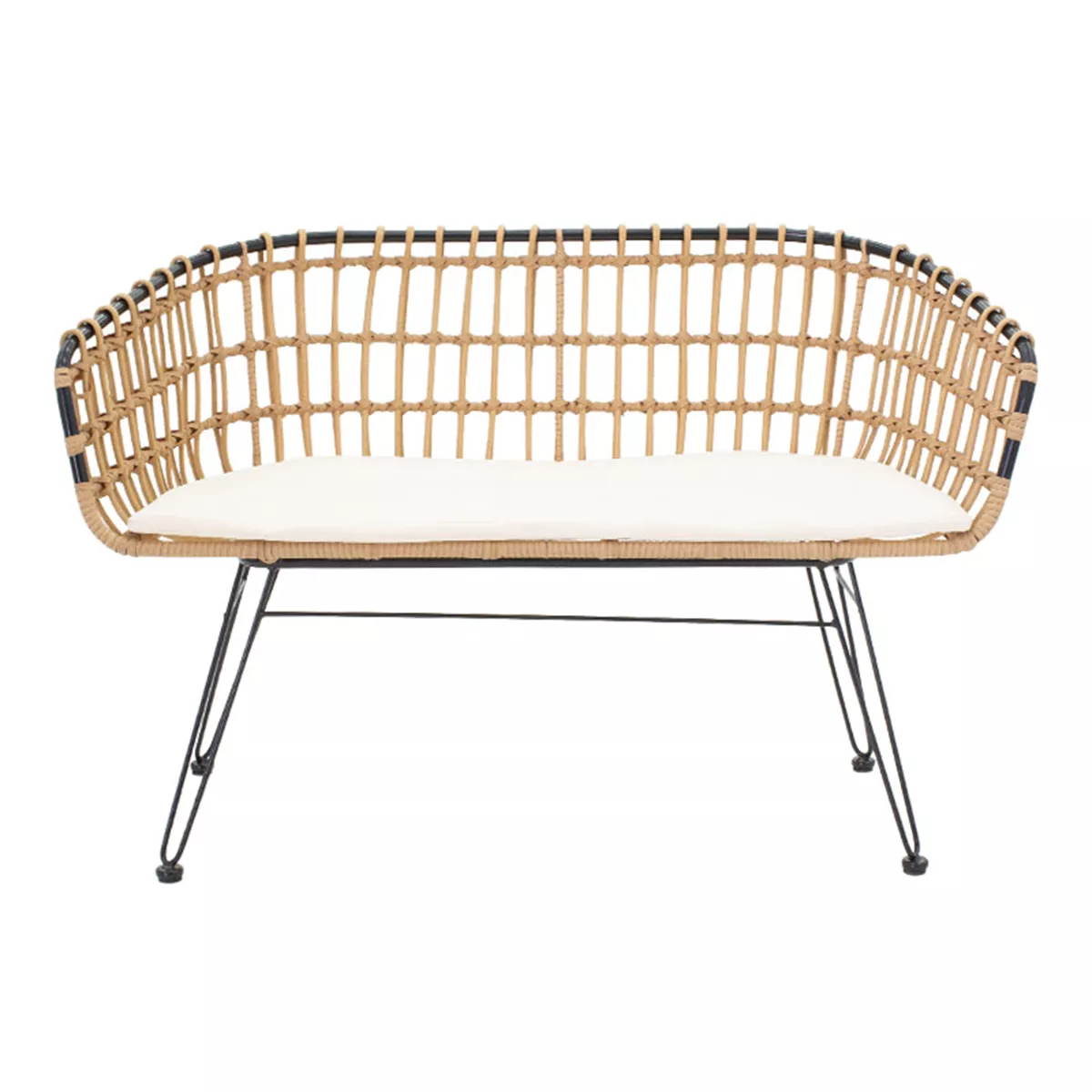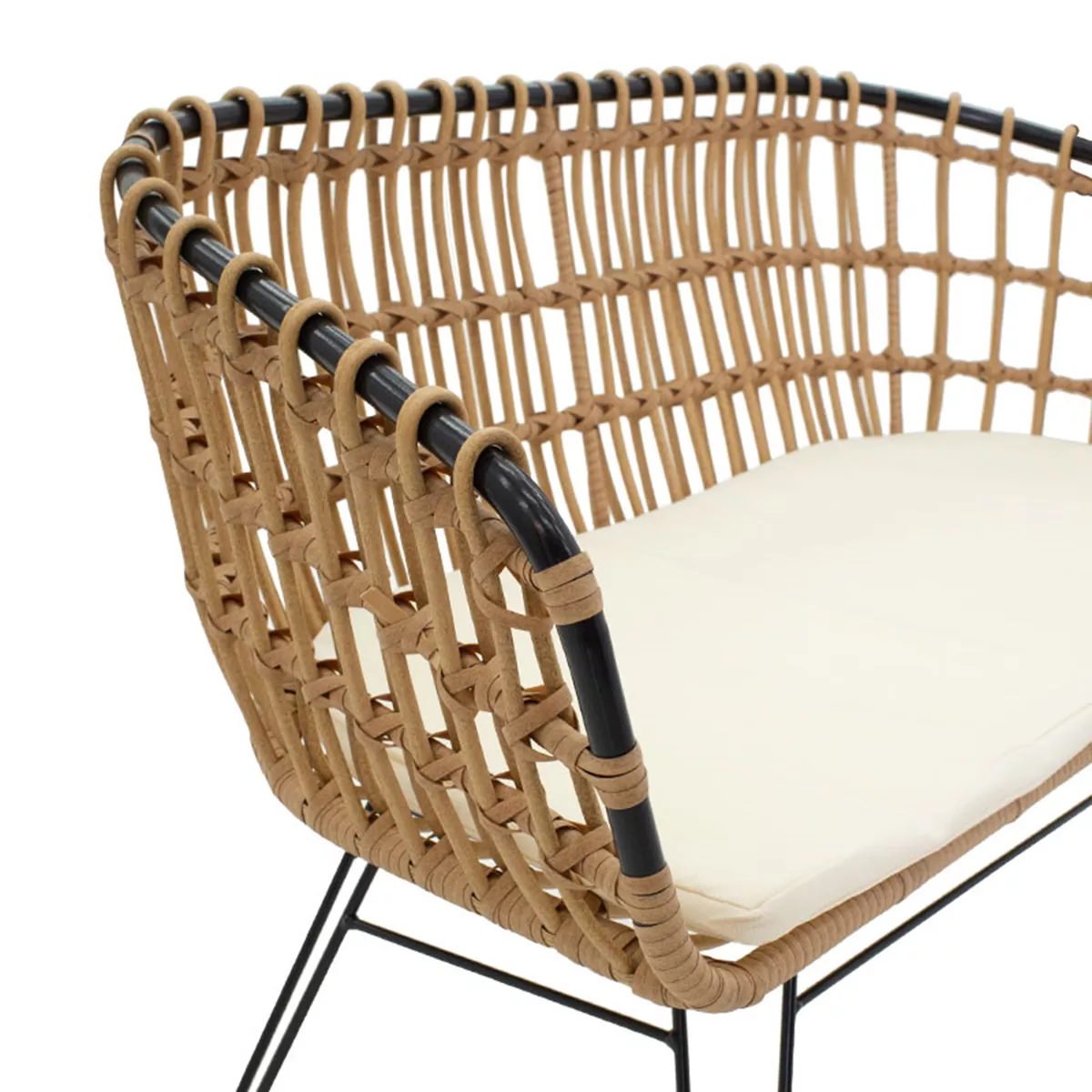 Καναπές 2θέσιος Naoki pakoworld μέταλλο μαύρο-pe φυσικό 120x55x79εκ