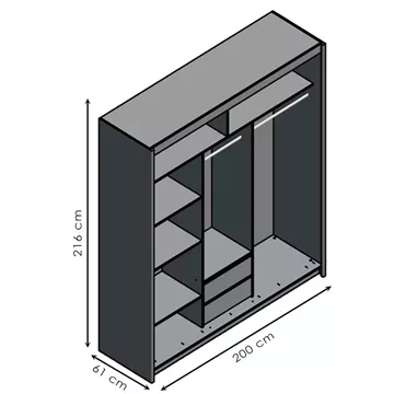 * Στο εσωτερικό περιλαμβάνει μία βέργα για κρεμάστρες και πέντε ράφια.