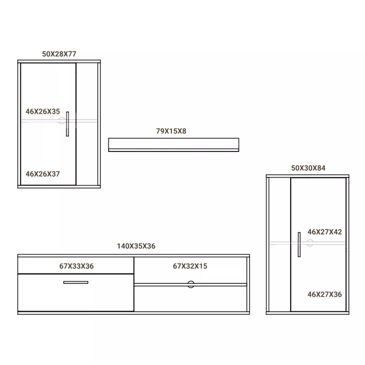 Σύνθετο σαλονιού Zafira pakoworld sonoma-λευκό 190x35x190εκ