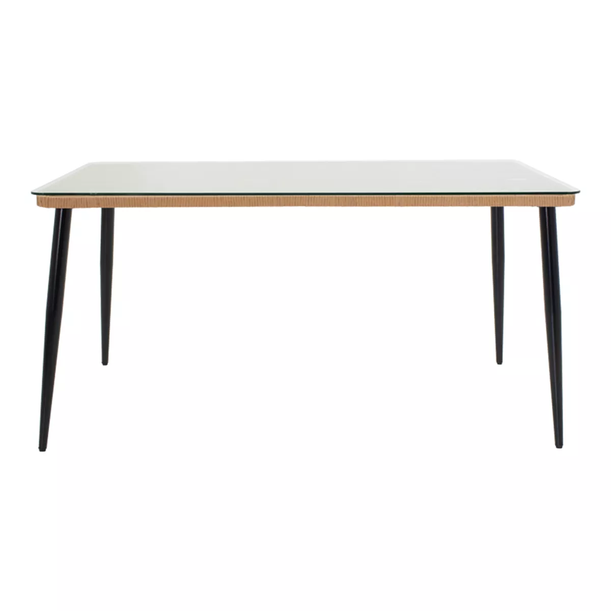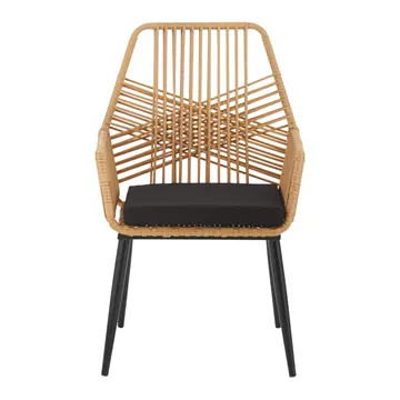 Τραπεζαρία Naoki-Tanish pakoworld σετ 7 τμχ rattan φυσικό-μαύρο μέταλλο-γυαλί 160x90x78εκ
