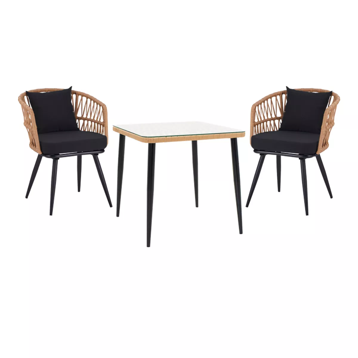 - Κυρίως επιφάνεια τραπεζιού από PE rattan. Το PE rattan είναι ένα είδος οικολογικού συνθετικού rattan, ανακυκλώσιμο και με μεγαλύτερη ανθεκτικότητα σε σχέση με τα άλλα είδη.