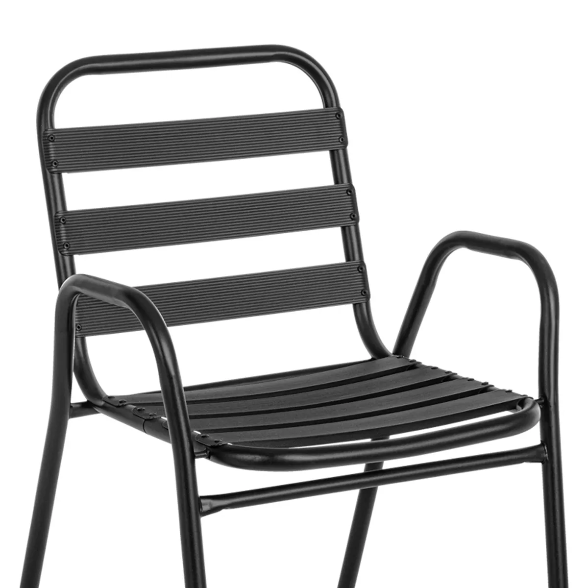 - Σταθερός σκελετός από μέταλλο εξαιρετικής ποιότητας με αντοχή σε φθορά και χρόνο, ενώ τα κομμάτια έδρας και πλάτης είναι κατασκευασμένα από φέτες αλουμινίου. Το μέταλλο παρέχει ανθεκτικότητα και σταθερότητα, ενώ οι φέτες αλουμινίου προσθέτουν ελαφρότητα και μια μοντέρνα αίσθηση στον σχεδιασμό. Η πολυθρόνα αυτή είναι ιδανική για χρήση σε εξωτερικούς χώρους, καθώς η ανθεκτικότητα στις καιρικές συνθήκες του αλουμινίου την καθιστά ανθεκτική σε έκθεση στον ήλιο και την υγρασία.